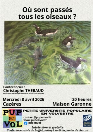 L’association PUP En Vol (Petite Université Populaire en Volvestre) organise une conférence « Où sont passés tous les oiseaux ? » mercredi 8 avril 2026 à 20 heures à la Maison Garonne.