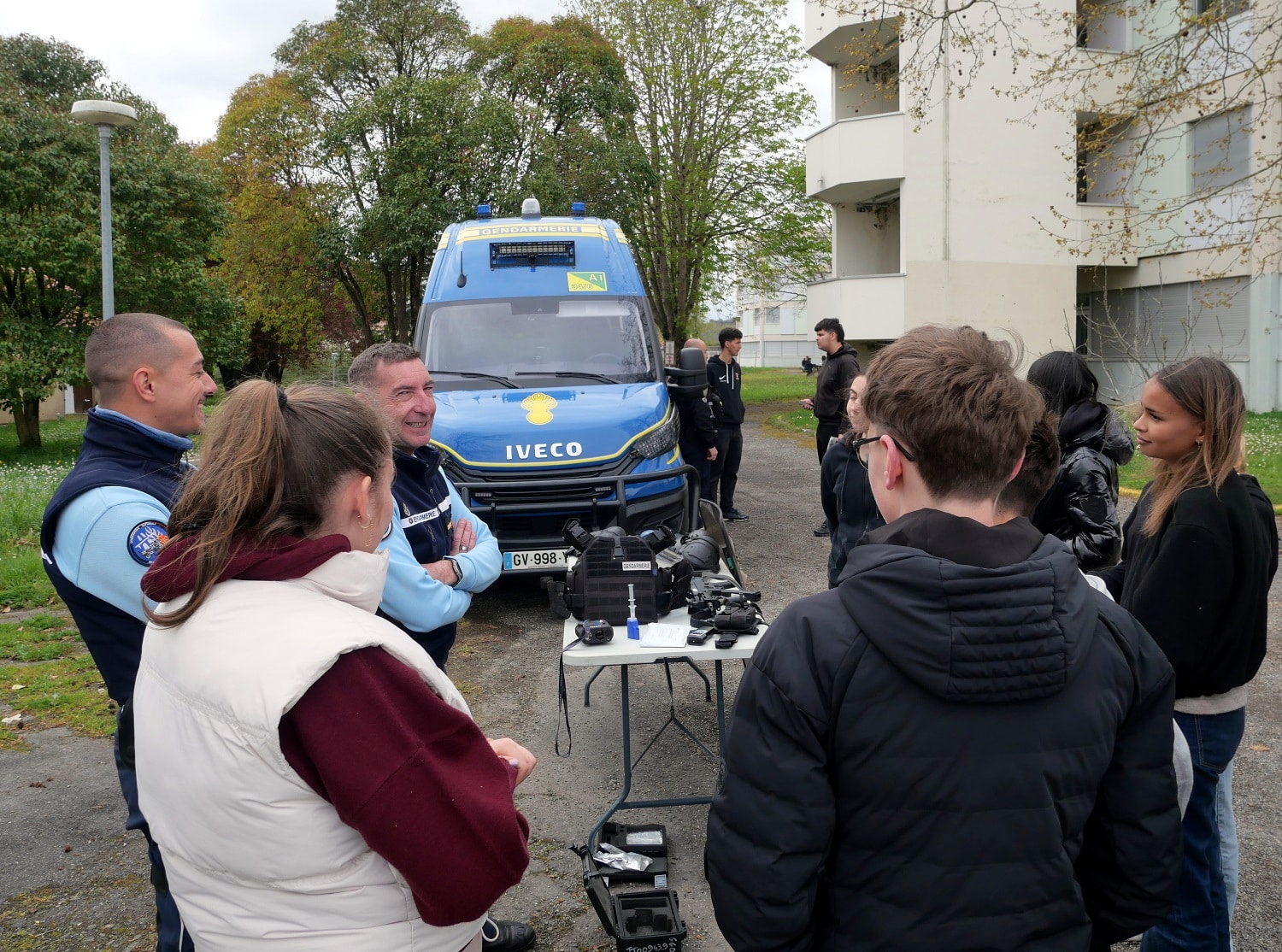 Des stands étaient installés tant à l’intérieur qu’à l’extérieur. Les élèves organisés en équipes pouvaient discuter avec les responsables et surtout répondre à un quizz. Il y avait également des épreuves physiques avec les pompiers et les militaires.