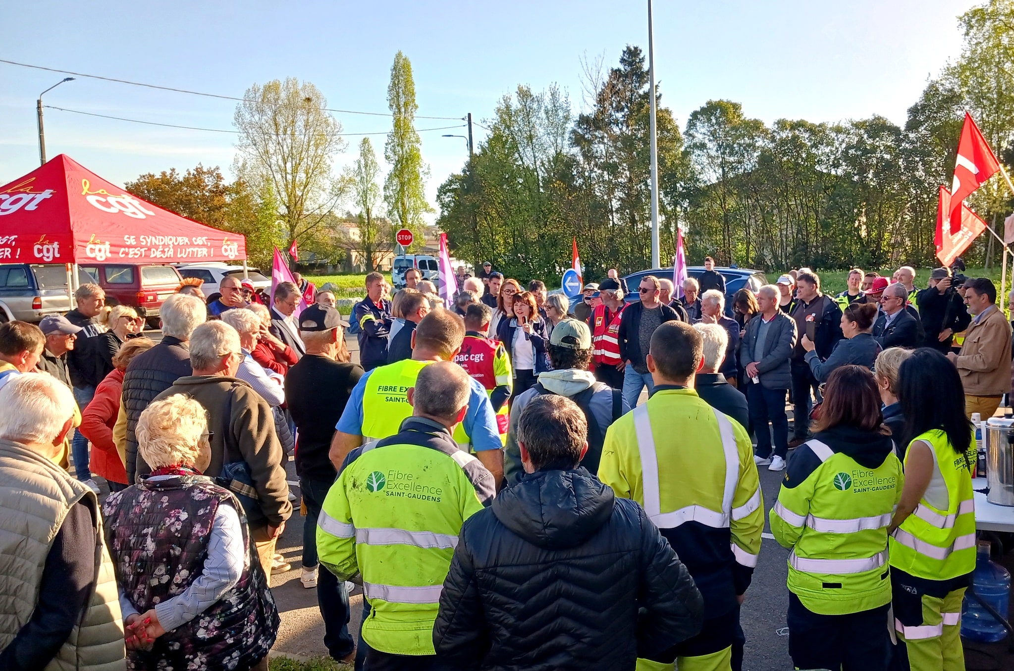 La présidente de la Région Occitanie Carole Delga a quasiment lancé la journée de mobilisation citoyenne organisée ce jeudi 9 avril 2026 devant l’usine Fibre Excellence, à Saint-Gaudens.