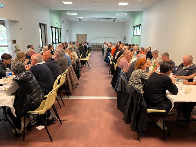 Et pour couronner la journée, le traditionnel repas s’est déroulé dans la salle du foyer-tiers lieu du village, où 104 convives ont festoyé dans la bonne humeur.