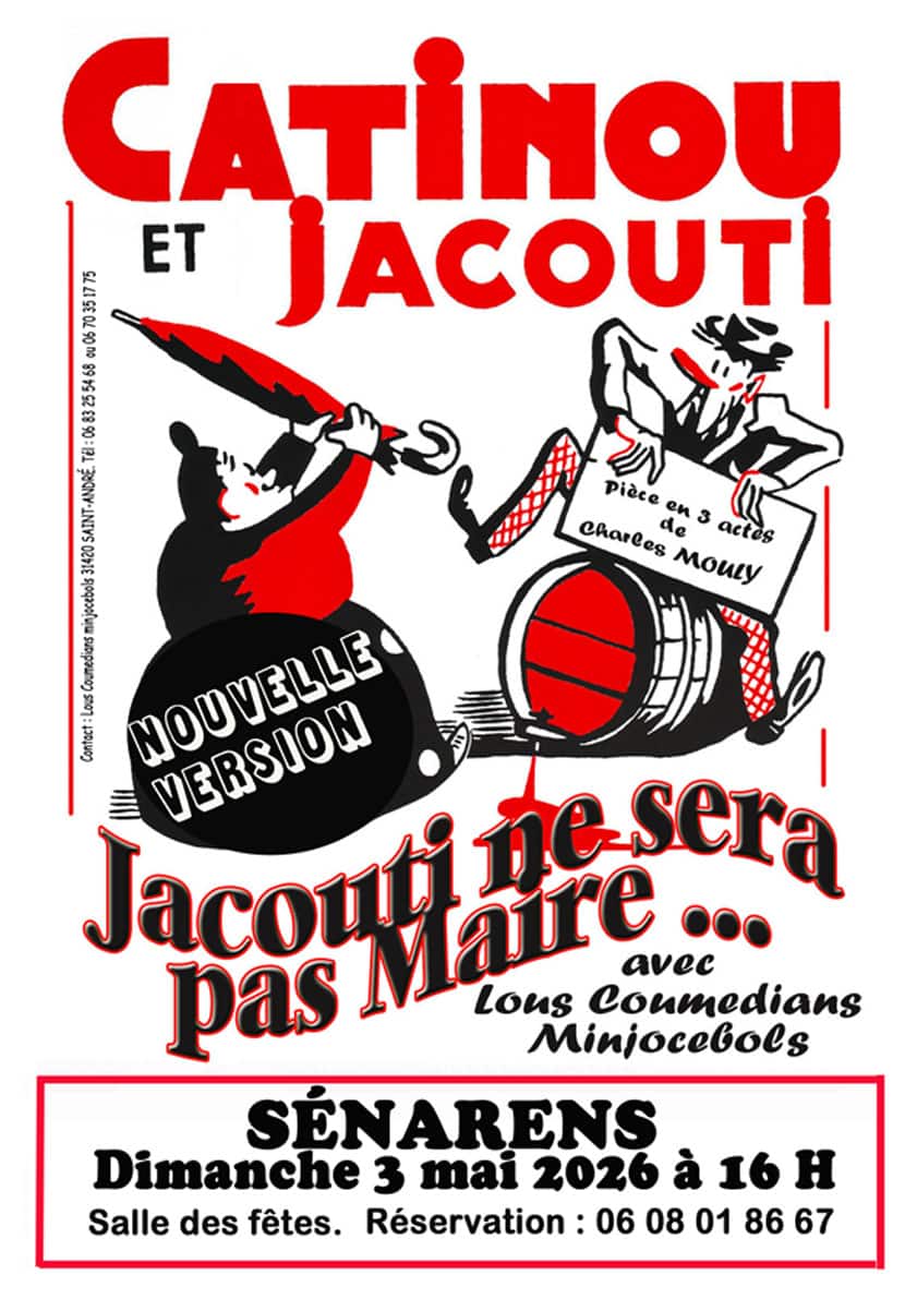 à 16 h « Catinou et Jacouti » avec la pièce revisitée « Jacouti ne sera pas Maire » de Charles Mouly (gratuit pour les invités au banquet).