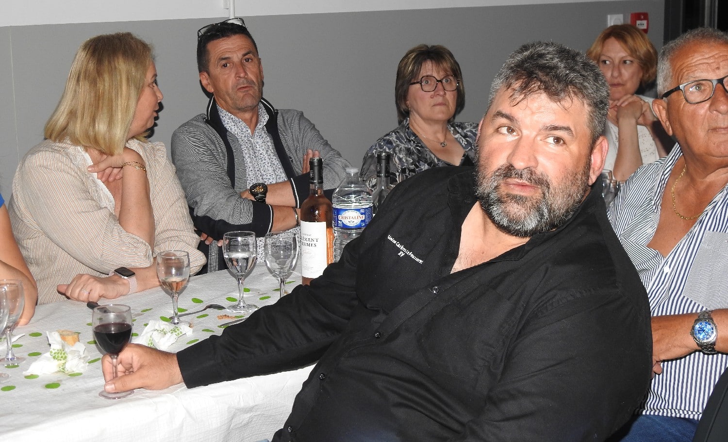 Juste avant le dessert, une surprise a été réservée aux convives : René Saint-Blancat a présenté l’artiste Philippe Roche, un comédien et chanteur talentueux qui a captivé l’audience, rendant le moment encore plus mémorable.