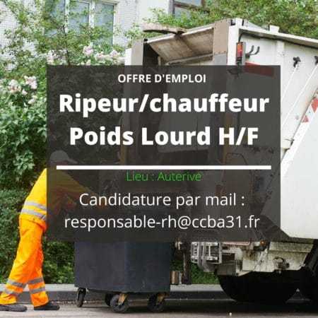 La Communauté de Communes du Bassin Auterivain recherche un ripeur/chauffeur PL H/F en CDD