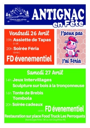 Fête de village à Antignac le vendredi 26 et samedi 27 avril