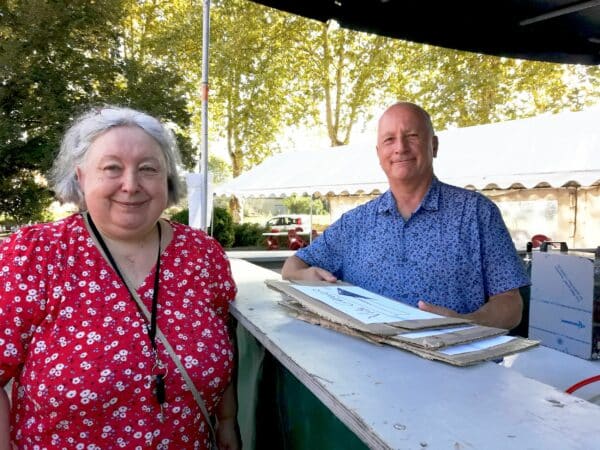 deux artistes vitraillistes montréjeaulais : Maryline et Francisco.