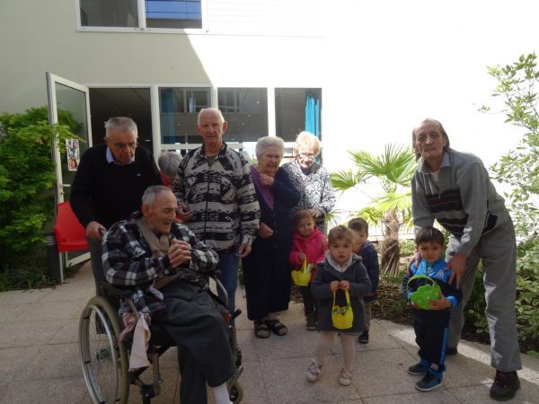 Les enfants de la M.A.M. Oscar et Compagnie sont venus ramasser les œufs de pâques dans la résidence Athéna-Orpea de Villeneuve de Rivière.