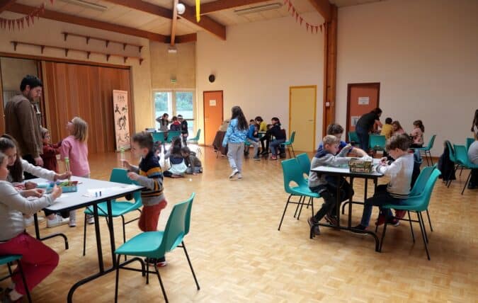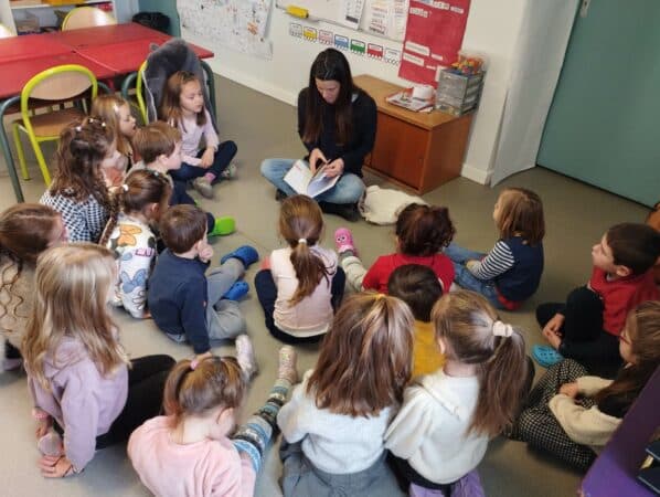Pauline Kamakine, poétesse, troubadoure, avec les enfants des écoles d’ Igon.