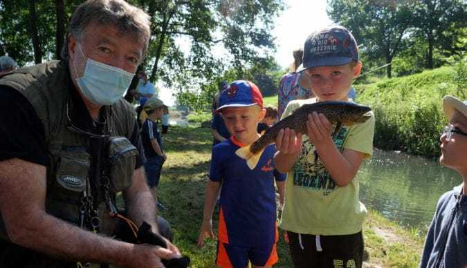 Ce sont plus de vingt enfants de 3 à 6 ans de la maternelle du village, qui sont venus dans un bras de la Garonne jeudi 10 juin, taquiner dame fario.