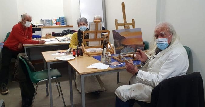 Malgré le confinement, l’atelier peinture de la MJC se poursuit.
