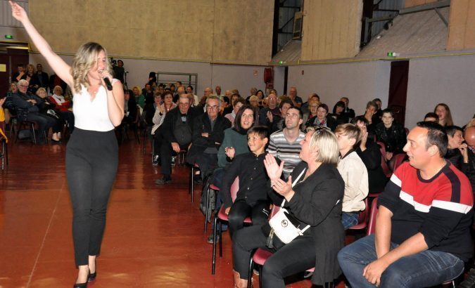 Samedi 13 mars, la salle des fêtes est bien remplie. Jeunes et moins jeunes attendent la vedette de la soirée : Laura Barrière.