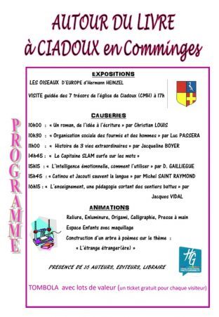 Liste alphabétique des Auteurs, Illustrateurs, Editeurs, au Salon « Autour du livre » à Ciadoux en Comminges le 26 novembre 2017.