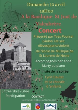 Le foyer rural de Saint Laurent de Neste vous convie à un concert en la balistique Saint Just le dimanche 13 avril à 18h. Yves