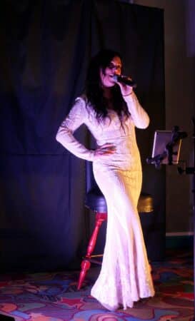 la belle Fanny Egéa chante des succès des années 70/80 mais également un extrait de son tout nouveau spectacle