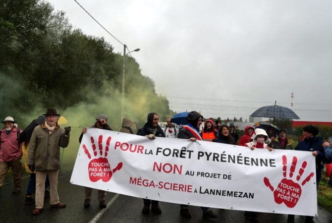 La pluie n’a pas arrêté les opposants au projet de méga scierie Florian sur la commune de Lannemezan. Projet soutenu par le maire Bernard Plano.