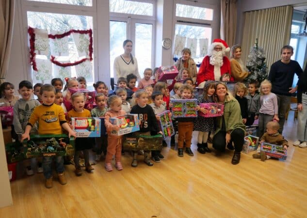 Dès son apparition, les chères têtes blondes se sont précipitées vers luiEcole privée Sainte Germaine