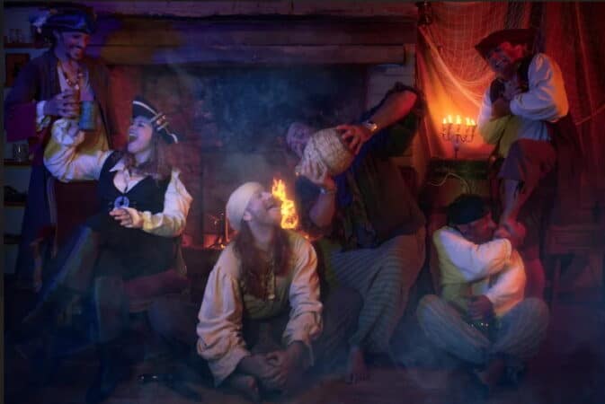 Le décor aura aussi pour effet de vous plonger dans l’ambiance d’une taverne peuplée de corsaires où coulent la bière et le vin.