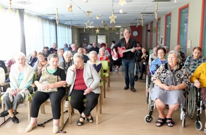 les résidents étaient rassemblés dans la salle d’animations pour voir et écouter un concert