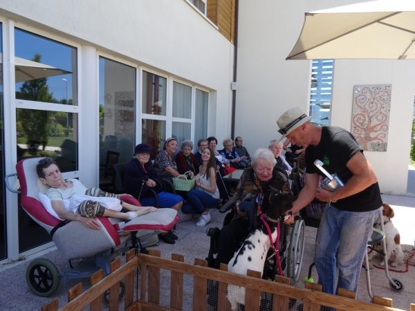 Christian Arnal est venu de Bordère-sur-l’Echez avec sa trentaine d’animaux de la ferme itinérante et pédagogique passer un après-midi à l’EHPAD Athéna.