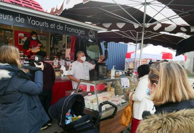 Petite animation au camion-magasin des Fromagers du Mont Royal ce lundi 15 février sur le marché de Montréjeau.