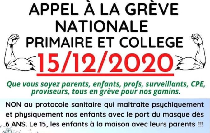 Un appel à la grève contre le port du masque à l’école a été lancé pour le mardi 15 décembre. Visiblement déclenché par des parents