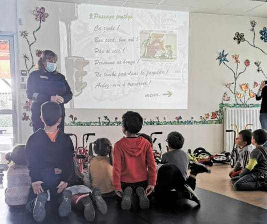 Vendredi 5 février, la policière municipale Katy Bajoue, et le « référent école » à la gendarmerie de Rieux-Volvestre, se sont rendus à l’école maternelle pour une opération de sensibilisation à la sécurité routière.